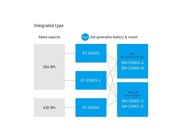 De BT-EN8065 Shimano fietsaccu is te plaatsen op de BM-EN800-A en BM-EN801-A voet/houder van Shimano, zie ook afbeelding hieronder (waarop voet/mount en fietsaccu compatibilteit is uitgebeeld):